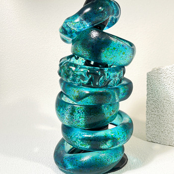 Kaimei เครื่องประดับแฟชั่น2025กำไลข้อมือเรซิ่นทรงกลมสีฟ้าน้ำริ้วย้อมพร้อมกำไลอะคริลิคสีฟ้าแบบย้อนยุค