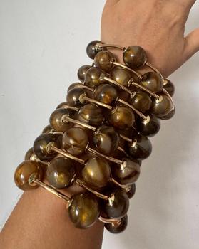 Kaimei เครื่องประดับแฟชั่น2025กำไลเรซินทรงสามเหลี่ยมขนาดใหญ่ไม่เรียบสำหรับผู้หญิงกำไลข้อมือทำจากเรซินสีน้ำตาลเข้ม