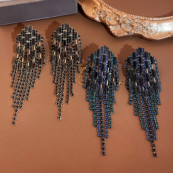 2023เครื่องประดับแฟชั่นขายส่งเพชรยาวพู่ต่างหูแฟชั่นผู้หญิงพูดเกินจริงยาวไพลินสีฟ้าเซอร์โคเนียต่างหู